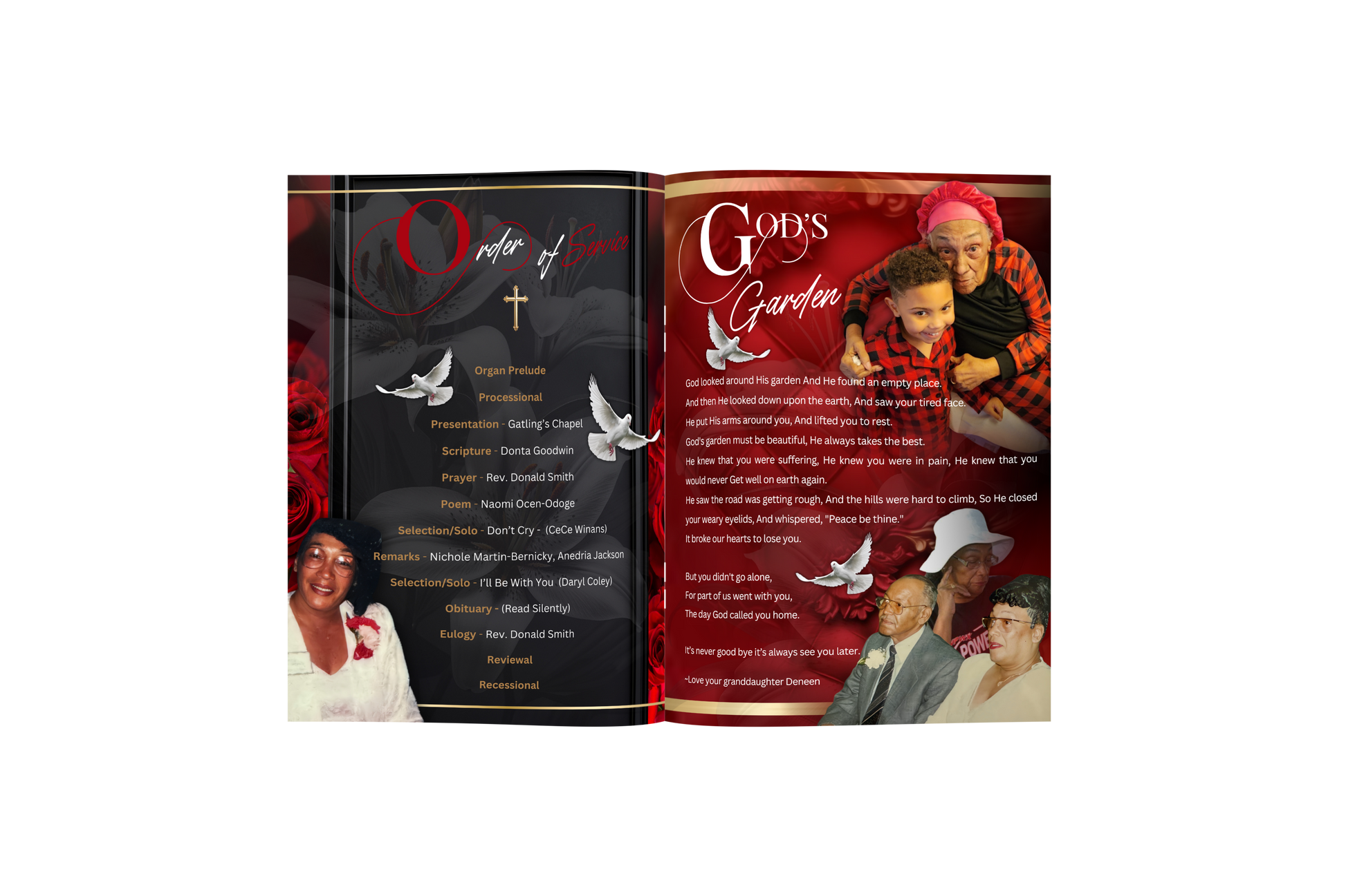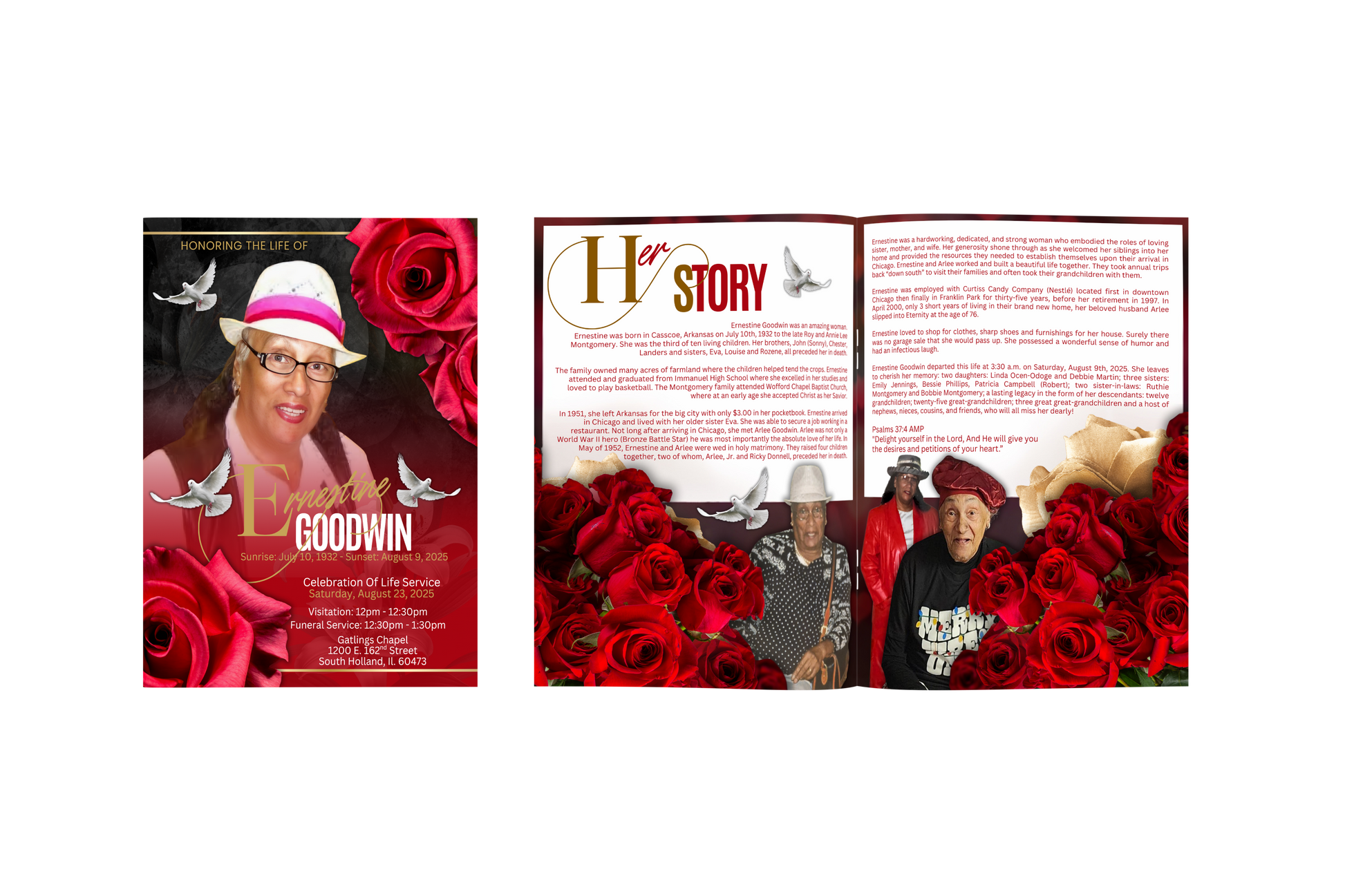 Our Signature Obituary Designs are thoughtfully crafted, professionally designed obituary layouts that are ready for immediate personalization. These are not templates!! Each design is already fully composed with beautiful formatting, stylized elements, and elegant visuals. All you need to do is provide the loved one’s information, and we’ll seamlessly customize it for you.