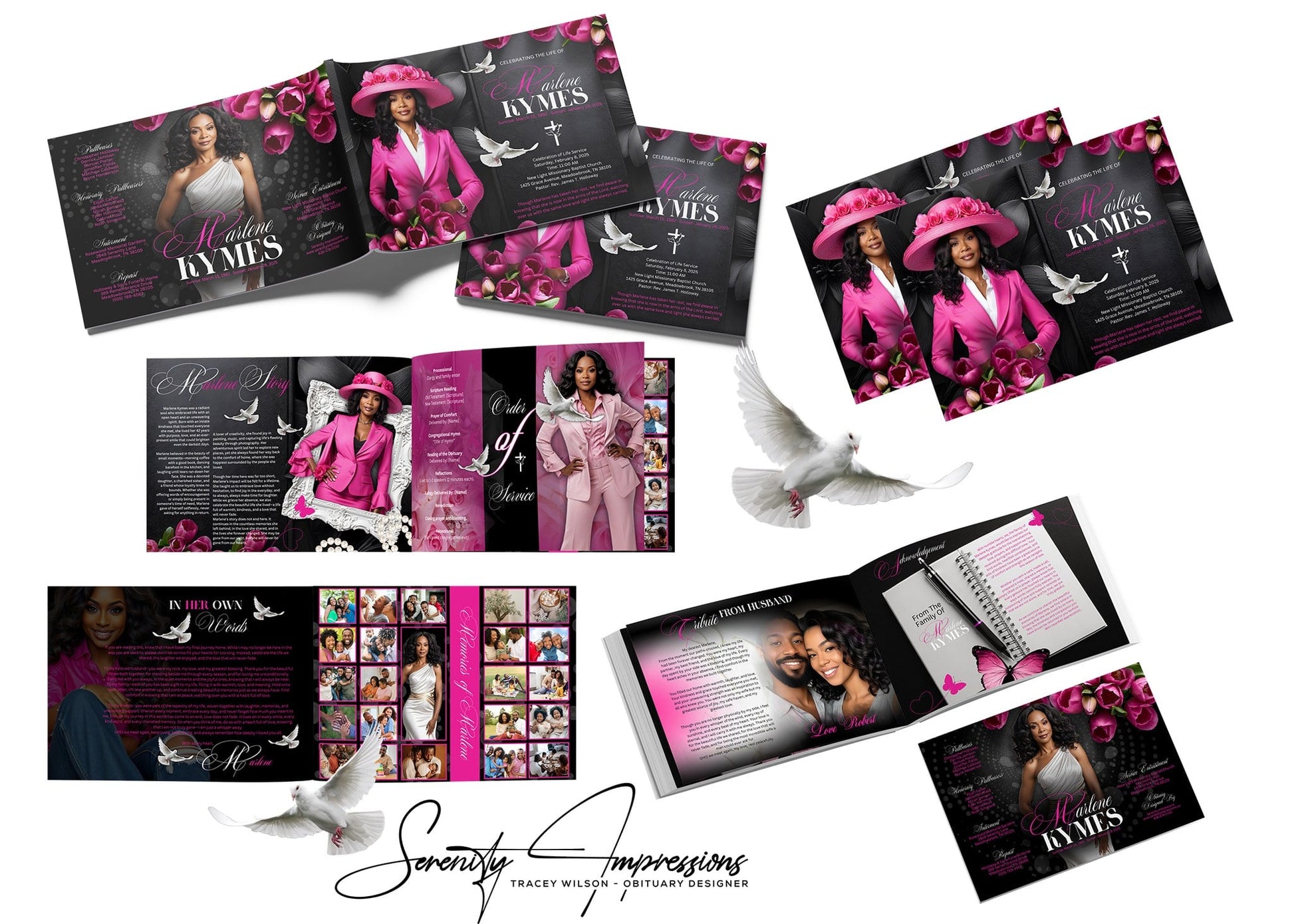 📄 Multiple pages available to include obituary, order of service, tributes, poems, and photo spreads